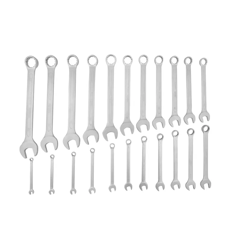 – محتویات این مجموعه شامل مجموعه ای از 22 آچار یک سر رینگ، یک سر تخت است که در اندازه های 8، 9، 10، 11، 12، 13، 14، 15، 16، 17، 18، 19، 20، 21، 22، 23، 24، 26، 27، 29، 30 و 32 میلی متر عرضه می شوند