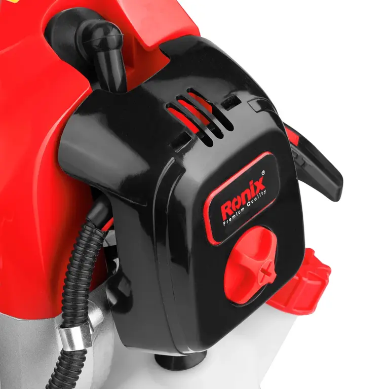 دسته بلند حاشیهزن موتوری یا بنزینی 4554 رونیکس، در یک طرف این ابزار قرار دارد و در طرف دیگر آن تیغه برشی چرخان تعبیه شده است. تیغهی برش فلزی سهپرهی این محصول و تیغهی نخ نایلونی، مخصوص کارهای سنگین باغبانی طراحی شده و با سرعت بالایی چمنها را کوتاه میکنند.
