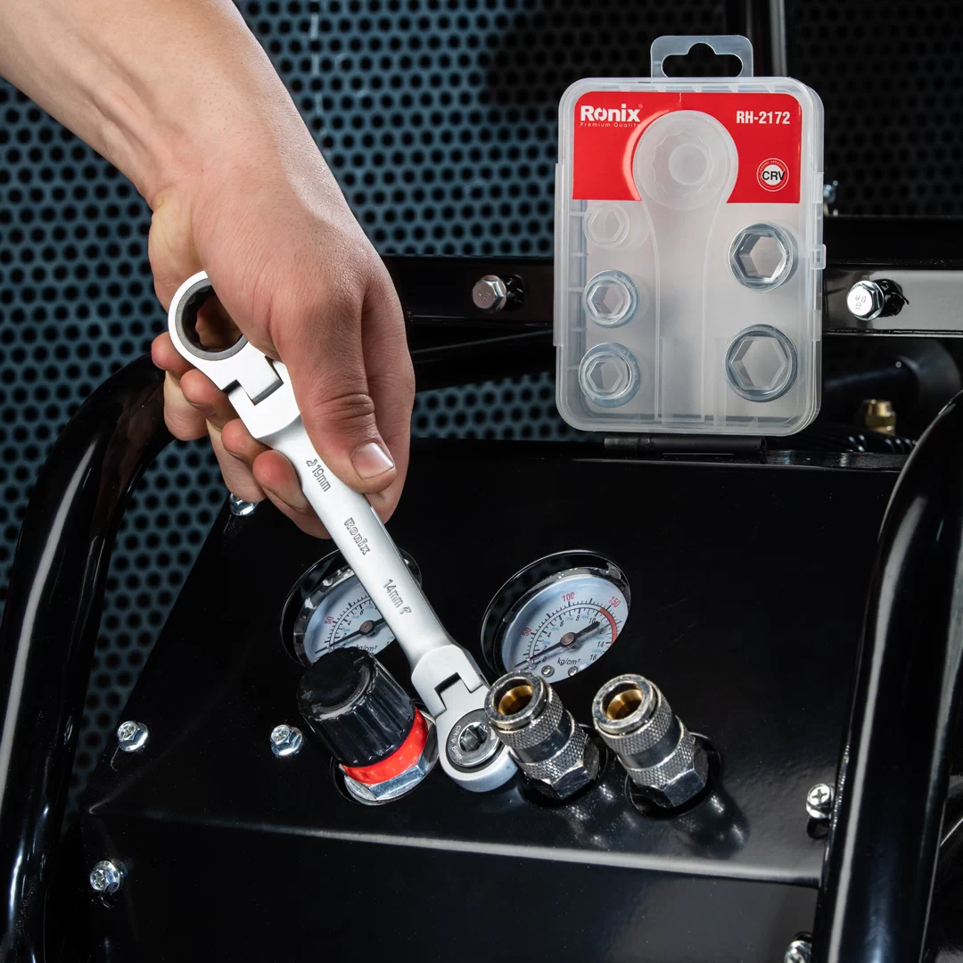 آچار جغجغه تاشو ابزاری کاربردی در کارگاه‌های مکانیکی، الکترونیکی، ساختمان‌سازی و … است. این ابزار برای کار در فضاهای تنگ و با دسترسی سخت انتخابی ایده‌آل است. ست سری آچار جغجغه دسته تاشو رونیکس مدل RH-2172 از کروم-وانادیوم سخت‌کاری‌شده ساخته شده و دوام و مقاومت بالایی دارد.