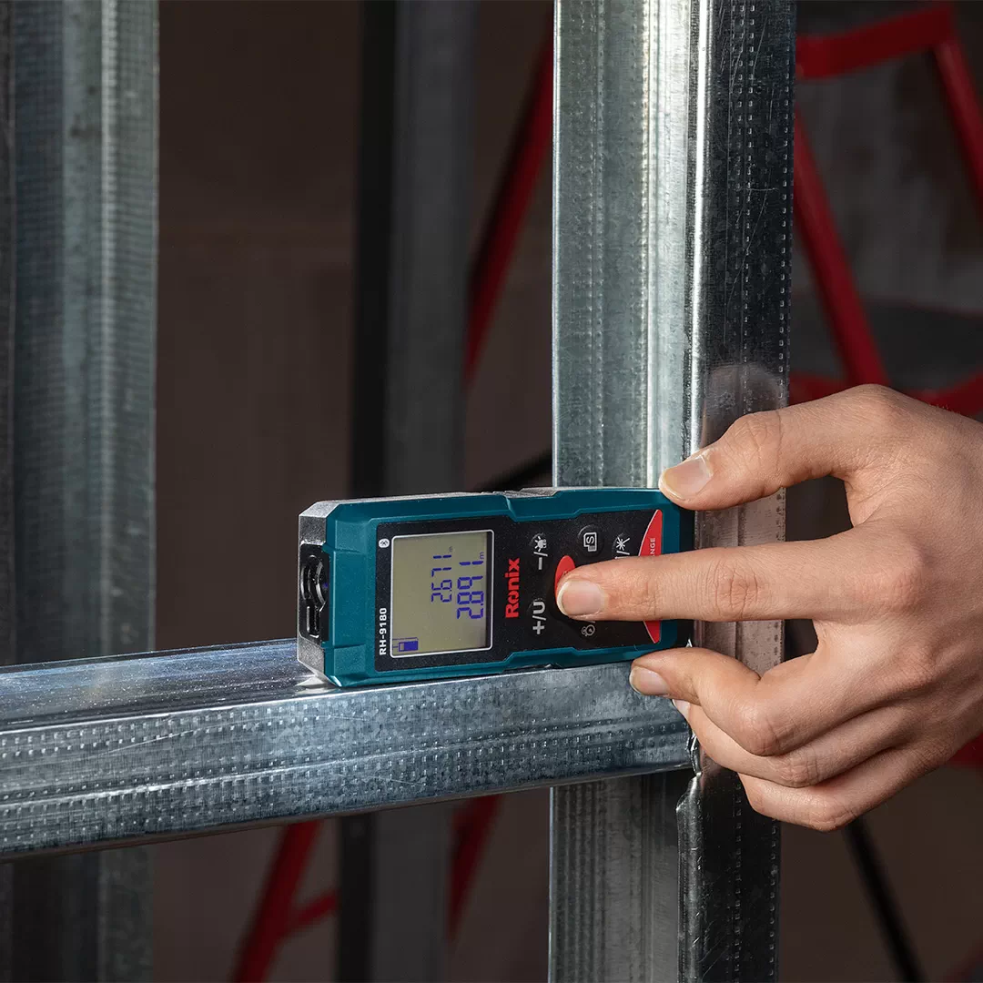 متر لیزری هوشمند و بلوتوثدار RH-9180 رونیکس با برد 80 متر، دارای تایمر مخصوص زمانبندی است و رزولوشن، دقت و سرعت اندازهگیری بالایی را به کاربران ارائه میدهد. RH-9180 با عملکرد Stake out، فاصله واقعی و مشخصشده را با رنگهای مختلف نشان میدهد