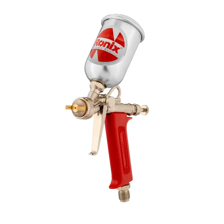 پیستوله سایه پاش RH-6405 رونیکس از ابزارهای مناسب برای نقاشی و رنگ آمیزی سطوح مختلف است که می تواند با سرعت بالا عمل پاشش رنگ را انجام دهد. این ابزار از ورودی هوای 1.4 اینچ، نازل 0.5 میلی متری و مخزنی با ظرفیت 125 میلی لیتر برخوردار است. این مخزن مجهز به طراحی ویژه ای بوده که باعث می شود تمام محتویات آن خالی شده و بدین ترتیب تمیزکردن این قطعه با سهولت انجام شود. از دیگر ویژگی های این پیستوله سایه پاش می توان به پیچ تنظیم میزان پاشش مایع اشاره کرد که می تواند نحوه پاشش و میزان مصرف هوا را تنظیم کند.