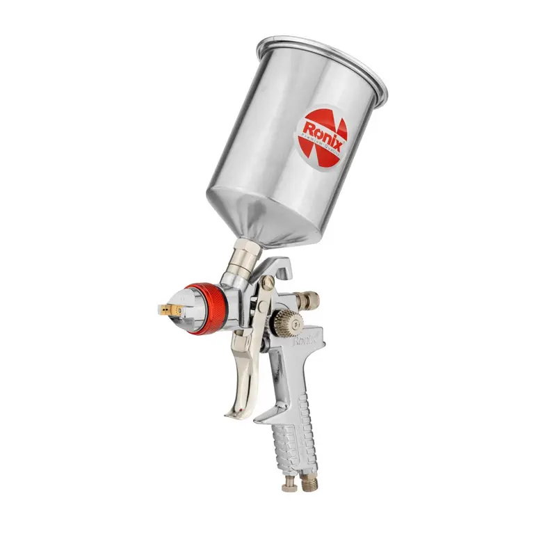 طراحی پپیشرفته و ارگونومیک پیستوله حرفه ای RH-6313 رونیکس این امکان را برای کاربر فراهم کرده که با بهره بردن از نیروی جاذبه پاششی یکنواخت و یکپارچه را روی سطح مدنظر خود داشته باشد. این پیستوله از قابلیت کنترل دستی برخوردار است که به تسهیل انجام فرایند کار برای کاربر منجر می شود. این پیستوله بادی کاسه فلزی دارای نازلی در اندازه 1.3 میلی متر است که این نازل به پوشش برنجی و مقاوم در برابر زنگ زدگی مجهز است و دوام و کارایی بالایی را در اختیار کاربران قرار می دهد. در کنار تمام این ویژگی ها این پیستوله نقاشی از مخزنی با ظرفیت 600 میلی لیتر برخوردار می باشد. این مخزن به گونه ای طراحی شده که باعث می شود تمام محتویات داخل آن خالی شود و در نتیجه فرایند تمیزکاری این قطعه تسهیل شود.