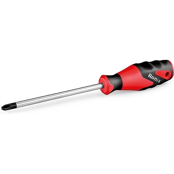 پیچ گوشتی چهارسو رونیکس مدل RH-2855 از ابزارهای دستی پر کاربرد است که در بسیاری از مشاغل و مصارف خانگی مورد استفاده قرار می گیرد. این ابزار مجهز به میله ای به طول 100 میلی متر و از جنس کروم وانادیوم است. این میله با استفاده از روکش کروم پوشش داده شده است و مقاومت بالایی در برابر فشار و سایش دارد.